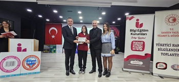 İLİMİZDE ORTAOKULLAR ARASINDA DÜZENLENEN “BİLİNÇLİ TÜKETİCİ OLMAK” KONULU RESİM YARIŞMASINDA SAMSUN İL BİRİNCİSİ OLAN BOĞAZİÇİ ORTAOKULU ÖĞRENCİMİZ ÖZÜM UZUN’A ÖDÜLÜNÜ TAKDİM ETTİK.
