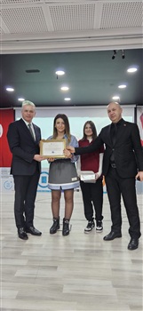 İl birincimiz için Bakanlığımız tarafından gönderilen hediye, öğretmenimiz için gönderilen teşekkür sertifikası ile okul için gönderilen plaket İl Müdürümüz Sayın Kürşat TURPÇU tarafından öğrencimize, öğretmenimize ve okul yetkililerimize takdim edildi.